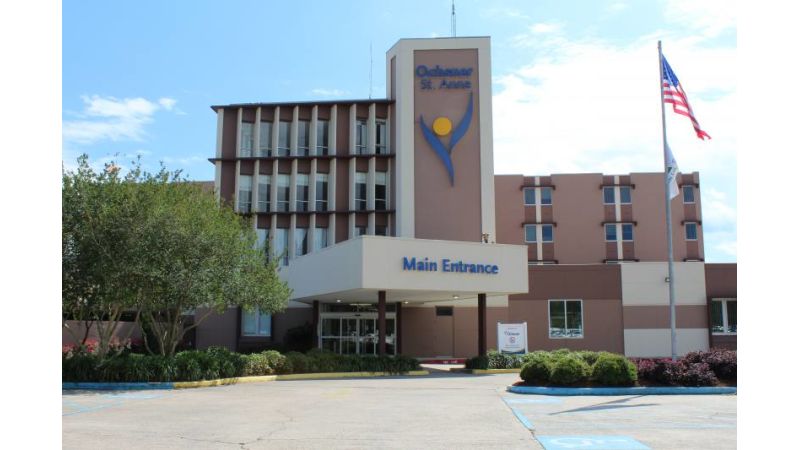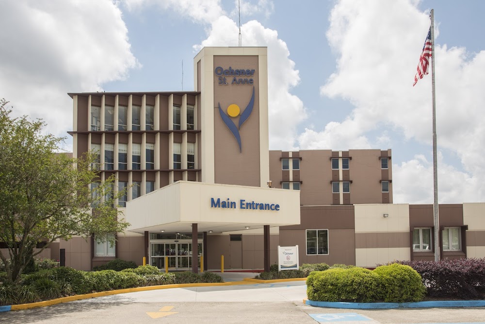 Ochsner st anne general hospital 65 ft high lctd 150 ft w of heliport.