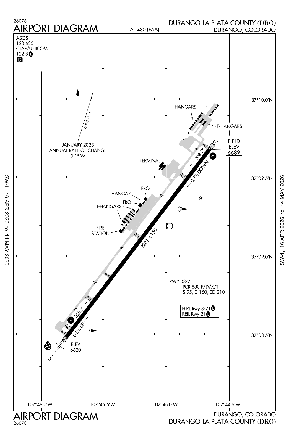 METAR KDRO 280053Z AUTO 00000KT 10SM SCT100 14/M06 A2993 RMK AO2 SLP096 T01441061