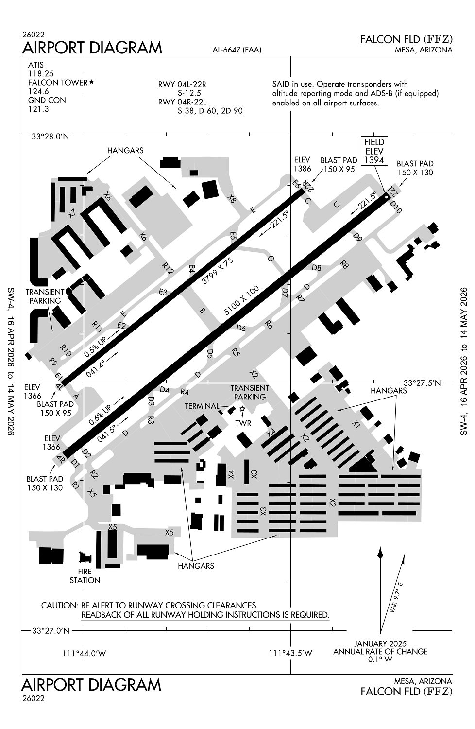 Runway 04R/22L: 5,100ft