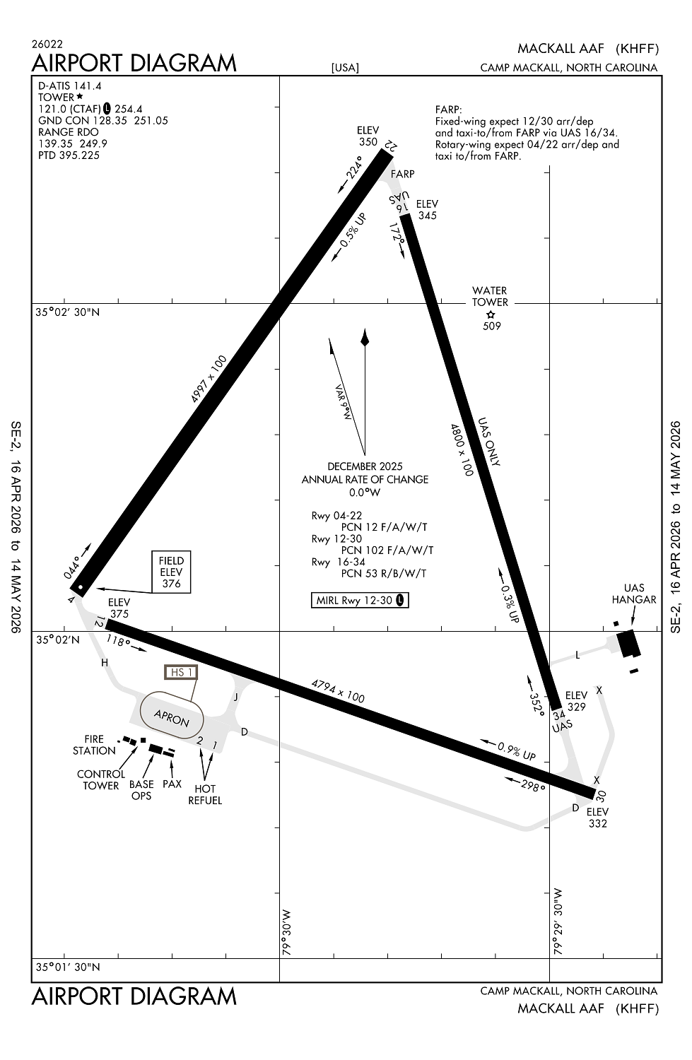 Caution: any use of tactical lgt configuration (amp), must ctc afld mgr for coord. extv mil acft invof afld, day and ngt. advisory: rng ctl 121.0, 304.6.