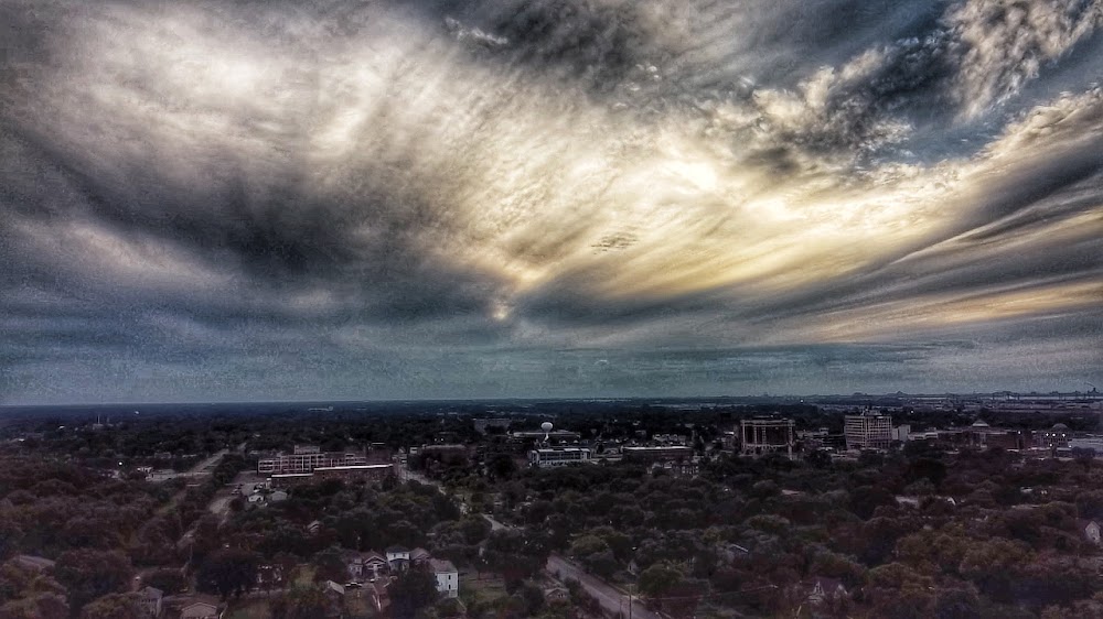Lighted pole lines east side 1/2 block rwy, marked radio tower so. end police station,marked hi chimney on bldg-north end.