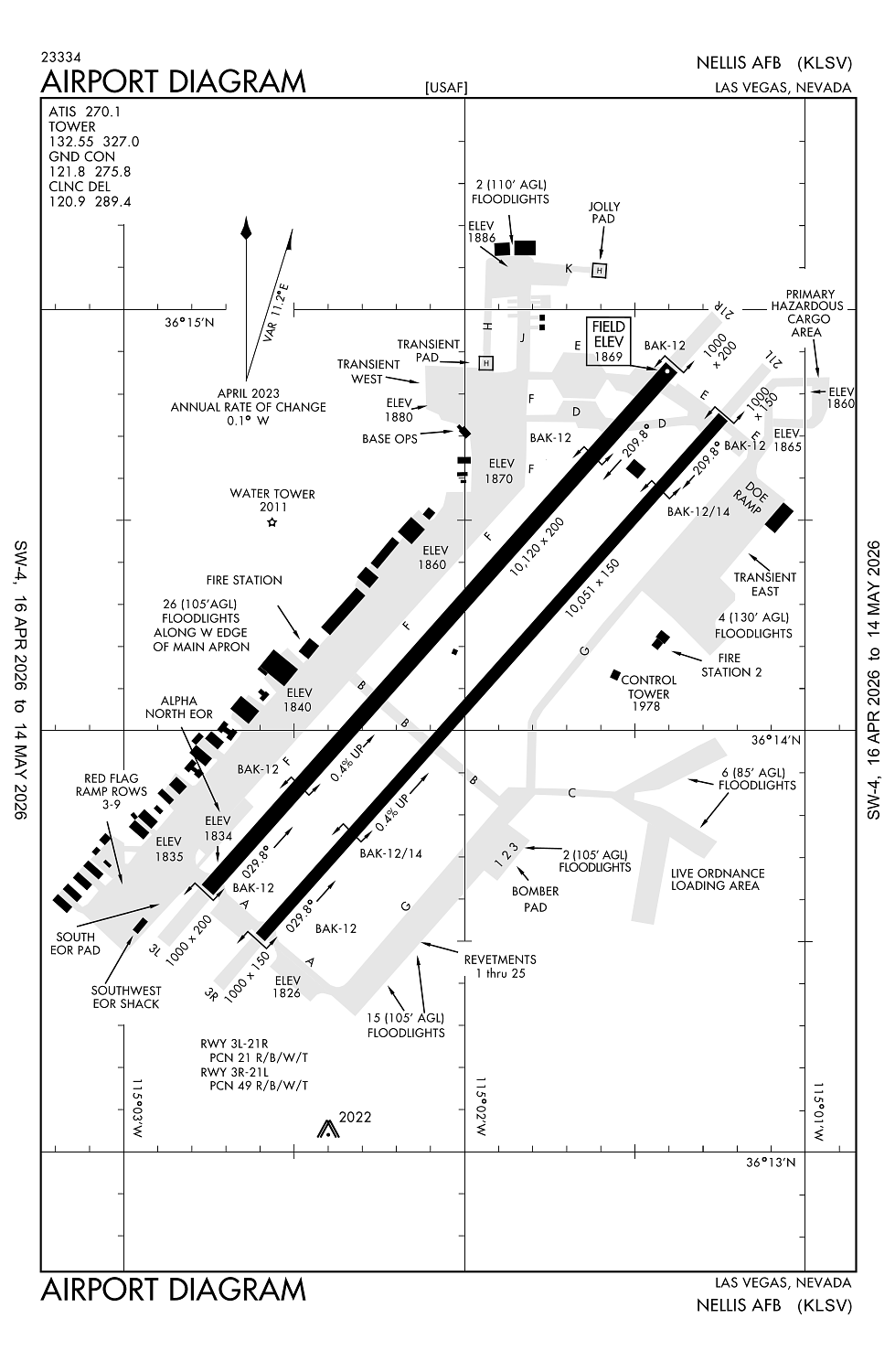 TAF KLSV 271500Z 2715/2821 20010G15KT 9999 SKC QNH2989INS BECMG 2720/2721 22015G25KT 9999 SKC QNH2983INS BECMG 2804/2805 18009KT 9999 FEW120 QNH2989INS TX22/2723Z TN09/2812Z