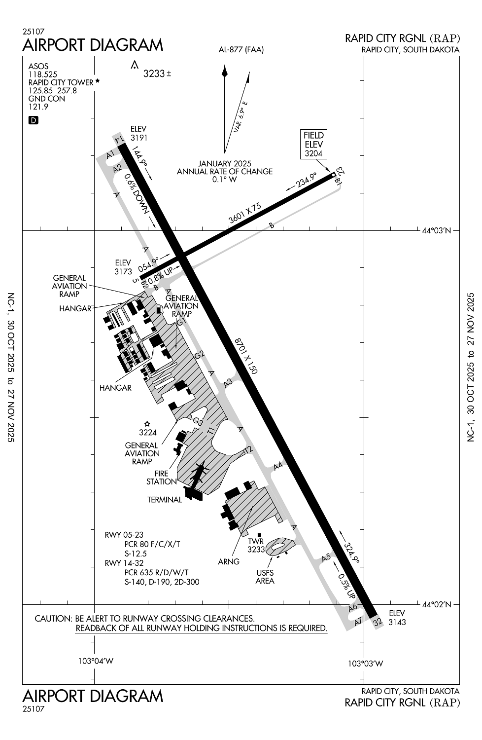 METAR KRAP 050852Z AUTO 33005KT 10SM CLR 01/M04 A2976 RMK AO2 SLP099 T00061044 58001